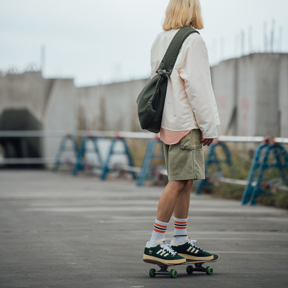 本体とショルダーベルトには、撥水性や防水性の高い素材を使用し、通常の雨天時なら十分に対応できる生活防水仕様。ジョイントには、高い耐久性を持つナイロン製のパラコードを使用。