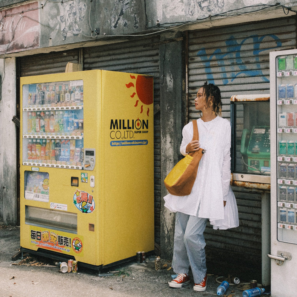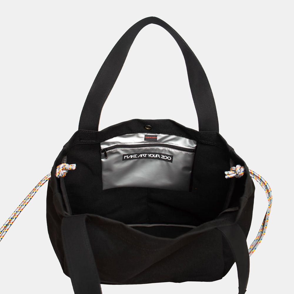 • 別売りのTASUKI BELTと組み合わせて、ショルダーバッグとして使用する際は、両サイドのコードの結び目で長さを調整可能。
